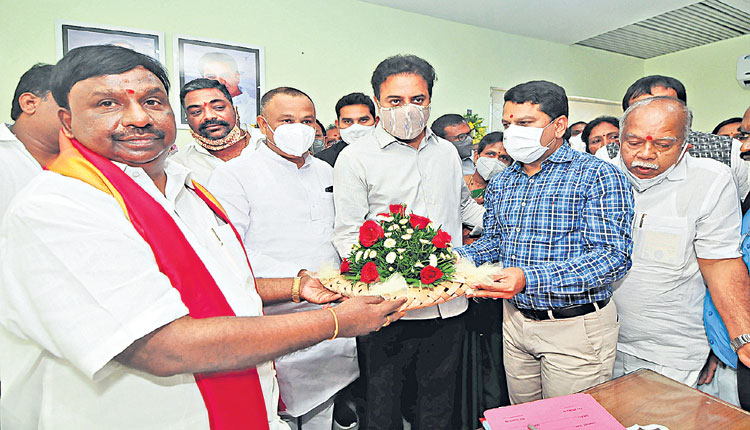 తెలంగాణ రాష్ట్ర పరిశ్రమల అభివృద్ధి సంస్థ(టీఎస్ఐడీసీ) చైర్మన్గా అమరవాది లక్ష్మినారాయణ శుక్రవారం బాధ్యతలు స్వీకరించారు. బషీర్బాగ్ పరిశ్రమల భవన్లో జరిగిన ఈ కార్యక్రమానికి రాష్ట్ర ఐటీ, పరిశ్రమల శాఖ మంత్రి కేటీఆర్ ముఖ్యఅతిథిగా హాజరై ఆయనకు శుభాకాంక్షలు తెలిపారు. హోంమంత్రి మహమూద్ అలీ, పశుసంవర్ధక శాఖ మంత్రి తలసాని శ్రీనివాస్యాదవ్, ఎమ్మెల్యేలు సుధీర్రెడ్డి, ప్రకాశ్గౌడ్, గణేశ్గుప్తా, ఎమ్మెల్సీ దయానంద్గుప్తా, వివిధ కార్పొరేషన్ల చైర్మన్లు దామోదర్ గుప్తా, బొల్లం సంపత్ కుమార్ గుప్తా , టీఎస్ఐడీసీ ఎండీ ఈవీ నర్సింహరెడ్డి, టీఆర్ఎస్ నాయకులు హాజరై అభినందనలు తెలిపారు. ఈ సందర్భంగా లక్ష్మీనారాయణ మాట్లాడుతూ తనపై సీఎం కేసీఆర్ ఉంచిన నమ్మకాన్ని వమ్ముచేయకుండా పనిచేస్తానని చెప్పారు.