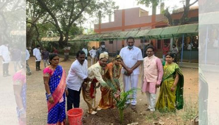 అప్పుడే పెళ్లైన కొత్త జంట గ్రీన్ ఇండియా ఛాలెంజ్‌లో పాల్గొని మొక్క నాటింది. గురువారం కరీంనగర్‌ పట్టణంలోని పద్మనాయక ఫంక్షన్‌ హాల్‌లో ఎనుముల విజయ్‌-మహిత వివాహం జరిగింది. వివాహమైన కొన్ని నిమిషాల‌కే కొత్త జంట గ్రీన్‌ ఇండియా ఛాలెంజ్‌లో పాల్గొంది. కరీంనగర్‌ మేయర్‌ వై సునీల్‌ రావు సమక్షంలో ఫంక్షన్‌హాల్‌ పరిసరాల్లో సంతోష్‌ రావు పేరుతో నూతన దంపతులు మొక్క నాటారు. పర్యావరణ పరిరక్షణకు పెద్ద ఎత్తున మొక్కలు నాటాల్సిందిగా మేయర్‌ ఈ సందర్భంగా పిలుపునిచ్చారు. యువత స్వచ్ఛందంగా ముందుకు వచ్చి మొక్కలు నాటుతూ గ్రీన్‌ ఇండియా ఛాలెంజ్‌‌ను విజయవంతం చేయాల్సిందిగా కోరారు.