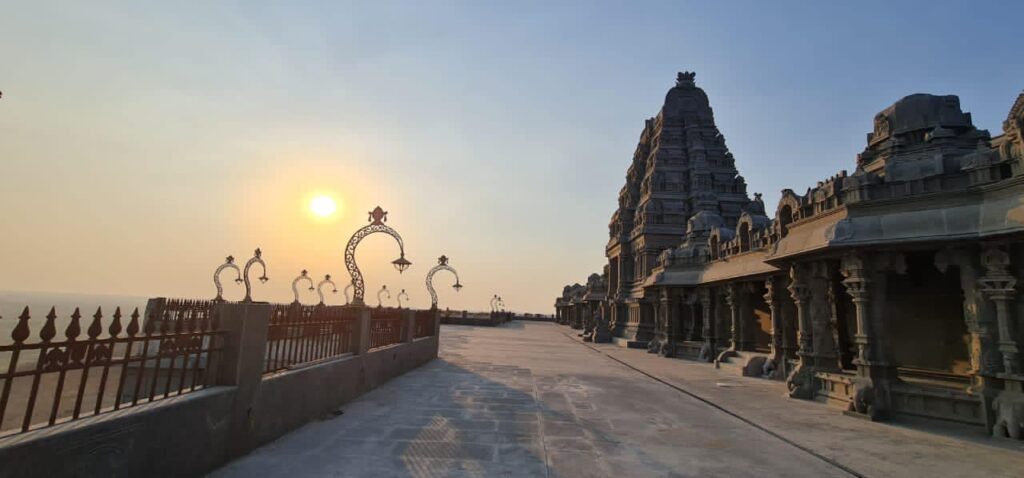 శివాలయ నిర్మాణం గురించి తెలుసుకున్న సిఎం, ఆలయ ప్రహరి గోడలకు ఇత్తడితో తీర్చిదిద్దిన త్రిశూలం ఆకారాలను బిగించాలన్నారు. ఉత్తర దిక్కు ప్రాకారాన్ని తొలగించి గుడి కనిపించే విధంగా గ్రిల్స్, రెయిలింగ్ లను ఏర్పాటు చేయాలన్నారు. ఇతర కట్టడాలు అడ్డులేకుండా, దేవాలయం చుట్టూ 360 డిగ్రీలు తిరిగి చూసినా సుందరంగా (ఐకానిక్ ఎలిమెంట్ లాగా) కనిపించే విధంగా తుదిమెరుగులు దిద్దాలని సిఎం అన్నారు. బ్రహ్మోత్సవాల్లో సుదర్శనం చక్రం ఏర్పాటు చేసినట్టు గానే, శివాలయం చుట్టూ త్రిశూలం దర్శనమీయాలని అన్నారు. రథశాలను టెంపుల్ ఎలివేషన్ తో తీర్చిదిద్దాలన్నారు. విష్ణు పుష్కరిణీ కొండపై చుట్టూ నిర్మించే ప్రహరీ గోడలమీద రెండు వైపులా వెలుగులు విరజిమ్మేలా విద్యుత్ దీపాలను అలంకరించాలన్నారు. 80 ఫీట్ల పొడవు వున్న దీప స్థంభాన్ని లాన్ నడుమ ఏర్పాటు చేయాలన్నారు.అద్దాల మండపం అత్యంత సుందరంగా నిర్మితమౌతున్నదని సిఎం కితాబిచ్చారు. చివరి అంకం చేరుకున్న ఆలయ నిర్మాణం పనులను వేగవంతం చేయాలన్నారు. రాత్రి వేళల్లో ఆలయ సముదాయాన్ని, ప్రాంగణాలను చుట్టూ పరిసరాలను దివ్యమైన వెలుగులతో ప్రకాశించే విధంగా రూపొందించిన లైటింగ్ డెమో వీడియోను సిఎం తిలకించారు.