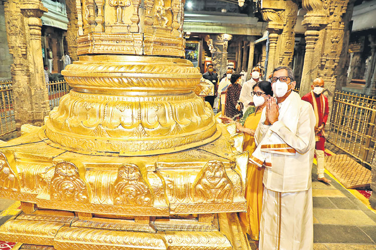 ఆంధ్రప్రదేశ్లోని తిరుమల శ్రీ వెంకటేశ్వర స్వామివారిని సుప్రీంకోర్టు ప్రధాన న్యాయమూర్తి జస్టిస్ ఎన్వీ రమణ దర్శించుకున్నారు. ఇవాళ ఉదయం వీఐపీ బ్రేక్ దర్శనంలో సతీసమేతంగా శ్రీవారిని దర్శించుకుని మొక్కులు చెల్లించుకున్నారు. అంతకుముందు జస్టిస్ ఎన్వీ రమణ దంపతులకు ఆలయ మహాద్వారం వద్ద అర్చకులు ఇస్తికఫాల్ స్వాగతం పలికారు. దర్శనం అనంతరం రంగనాయకుల మండపం వద్ద వారికి ఆలయ అర్చకులు వేదమంత్రాలతో ఆశీర్వచనం అందించారు. ఆలయ చైర్మన్ వైవీ సుబ్బారెడ్డి, అధికారులు స్వామివారి తీర్థ ప్రసాదాలు అందజేశారు. అటునుంచి జస్టిస్ ఎన్వీ రమణ తిరుచానూరు వెళ్లనున్నారు. పద్మావతి అమ్మవారిని దర్శించుకుంటారు. నిన్న రాత్రి శ్రీవారి ఏకాంత సేవలో పాల్గొన్నారు.