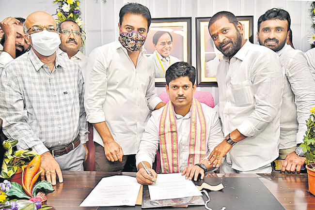 తెలంగాణ రాష్ట్ర టెక్నాలజీ సర్వీసెస్ చైర్మన్గా పాటిమీది జగన్ మోహన్ రావు, బేవరేజెస్ కార్పొరేషన్ చైర్మన్గా గజ్జెల నగేశ్, మినరల్ డెవల్పమెంట్ కార్పొరేషన్ చైర్మన్గా మన్నె క్రిశాంక్ బాధ్యతలు స్వీకరించారు. ఆయా కార్పొరేషన్లకు వారిని ఇటీవలే సీఎం కేసీఆర్ చైర్మన్లుగా నియమించిన సంగతి తెలిసిందే. బుధవారం ఆయా కార్పొరేషన్ల చైర్మన్ల చాంబర్లలో జరిగిన బాధ్యతల స్వీకార కార్యక్రమంలో మంత్రులు కేటీఆర్, మహమూద్ అలీ, తలసాని శ్రీనివాస్ యాదవ్, శ్రీనివా్సగౌడ్, ఎమ్మెల్యేలు గువ్వల బాలరాజు, మాధవరం కృష్ణారావు, మైనంపల్లి హన్మంతరావు తదితరులు పాల్గొని అభినందనలు తెలిపారు.