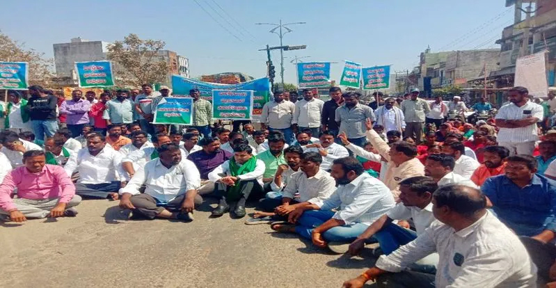 వ్యవసాయానికి మూల కేంద్రంగా నిలిచే పల్లెల్లో ఇథనాల్‌ ఫ్యాక్టరీలను ఏర్పాటు చేయకుండా గ్రామీణ ప్రాంతాల్లోని విద్యార్థుల కోసం గురుకులం, మోడల్‌ స్కూల్‌, కేజీబీవీ పాఠశాలలను ఏర్పాటు చేయాలని డిమాండ్‌ చేస్తూ అఖిల పక్షం నాయకులు గురువారం మెట్‌పల్లి పట్టణంలోని పాత బస్టాండ్‌ వద్ద ధర్నా, రాస్తారోకో నిర్వహించారు. మెట్లచిట్టాపూర్‌ రైతులతో కలిసి ర్యాలీగా ఆర్డీవో కార్యాలయానికి వెళ్లి ఆర్డీవో వినోద్‌కుమార్‌కు వినతి పత్రం అందజేశారు. ఈ సదర్భంగా తెలంగాణ జన సమితి రైతు విభాగం అధ్యక్షుడు కంతి మోహన్‌రెడ్డి మాట్లాడుతూ మెట్లచిట్టాపూర్‌ గ్రామంలోని సర్వే నంబర్లు 498, 506గల భూములలో ఇండస్ట్రీయల్‌ పార్క్‌, ఇథనాల్‌ ఫ్యాక్టరీ ఏర్పాటు కు వ్యతిరేకంగా రైతులతో కలిసి ధర్నా చేశామన్నారు. గ్రామంలో వ్యవసాయంపై ఆ ధారపడ్డ బడుగు బలహీన వర్గాలకు చెందిన రైతులకు ప్రభుత్వం పట్టాలు ఇచ్చి నట్టే ఫ్యాక్టరీలను ఏర్పాటు చేస్తామని లాక్కోవడం దారణం అన్నారు. పట్టాదా రు లకు ఎలాంటి నోటీసులు, సమాచారం ఇవ్వకుండా వారి భూములను లాక్కొని చదును చేసి స్వాధీనం పరచుకోవడంతో పేద రైతులు ఎం చేసుకొని బతకాలని ప్రభుత్వాన్ని నిలదీశారు. ఇదివరకే అక్కడ గ్రామీణ ప్రాంతంలోని విద్యార్థులకు కోసం గురుకులం, మోడల్‌ స్కూల్‌, కేజీబీవీ పాఠశాలలను ఏర్పాటు చేయడానికి ప్రభుత్వం గతంలో సర్వే చేసిందన్నారు. పాఠశాలలు నిర్మించిన తర్వాత మిగిలిన భూమిలేని పేద రైతులు సాగు చేసుకోవడానికి పట్టాలు ఇవ్వాలని డిమాండ్‌ చే శారు. ఈ కార్యక్రమంలో అఖిల పక్షం నాయకులు కొమిరెడ్డి కరంచందు, సురభి నవీన్‌రావు, బోడ్ల రమేష్‌, పుప్పాల లింబాద్రి, చెట్లపల్లి సుఖేందర్‌గౌడ్‌, అల్లూరి మహేందర్‌రెడ్డి, రైసోద్దిన్‌, కంతి రమేష్‌, వన్నెల శివ, రైతులు పాల్గొన్నారు.