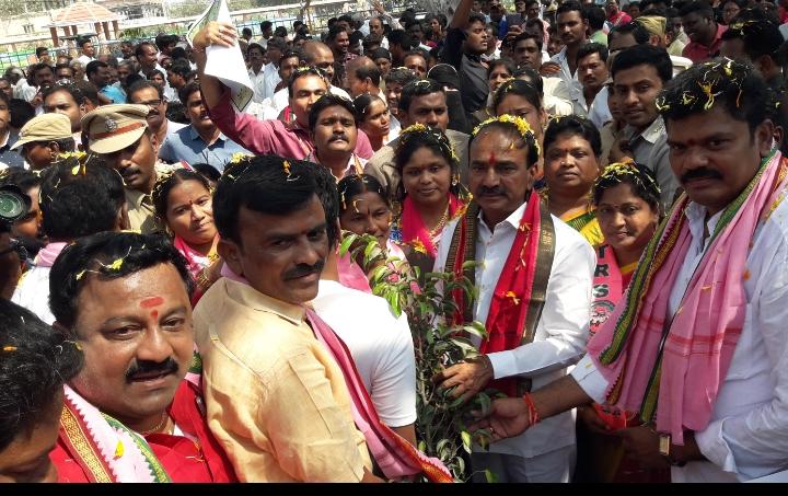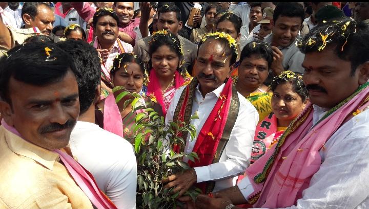 రాజ్యసభ సభ్యులు జోగినిపల్లి సంతోష్ కుమార్ ప్రతిష్టాత్మకంగా చేపట్టిన గ్రీన్ ఇండియా ఛాలెంజ్ లో భాగంగా హుజురాబాద్ లో మొక్కలు నాటిన ఆరోగ్య శాఖ మంత్రి ఈటెల రాజేందర్.