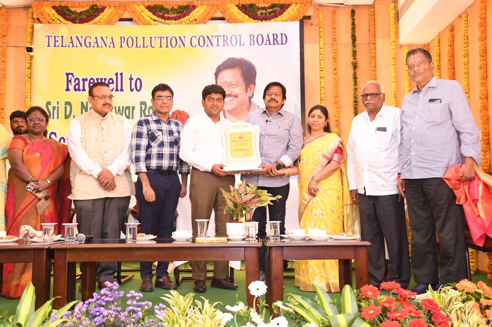తెలంగాణ కాలుష్య నియంత్రణ మండలి (టిజిపిసిబి) జాయింట్ చీఫ్ ఎన్విరాన్ మెంటల్ సైంటిస్ట్ (జె.సి.ఇ.ఎస్.) డి. నాగేశ్వర్ రావు పదవీ విరమణ చేశారు. ఈ సందర్భ్భంగా పీసీబీలో ఏర్పటు చేసిన కార్యక్రమలో సభ్య కార్యదర్శి జి. రవి మాట్లాడుతూ నాగేశ్వర్ రావు చేసిన సేవలను కొనియాడారు. శాస్త్రవేత్తగా తన పదవీకాలంలో సమర్థవంతమైన సేవలను ఆయన ప్రశంసించారు. ఆయన రిటైర్మెంట్ జీవితం సంతోషంగా మరియు ఆరోగ్యంగా ఉండాలని ఆకాంక్షించారు. సంస్థకు ఆయన 35 సంవత్సరాలు అంకితభావంతో చేసిన సేవలను ప్రశంసించారు. తనకు సహకరించినందుకు అధికారులు మరియు సిబ్బందికి ఆయన కృతజ్ఞతలు తెలిపారు. టిజిపిసిబి అధికారులు మరియు సహచరులు ఆయన పదవీకాలంలో తమ జ్ఞాపకాలను పంచుకున్నారు. సిబ్బంది, అధికారులు శాలువా మరియు జ్ఞాపికతో ఘనంగా సత్కరించారు. ఈ కార్యక్రమంలో చీఫ్ ఇంజనీర్ బి. రఘు అధికారులు మరియు సిబ్బంది పాల్గొన్నారు.