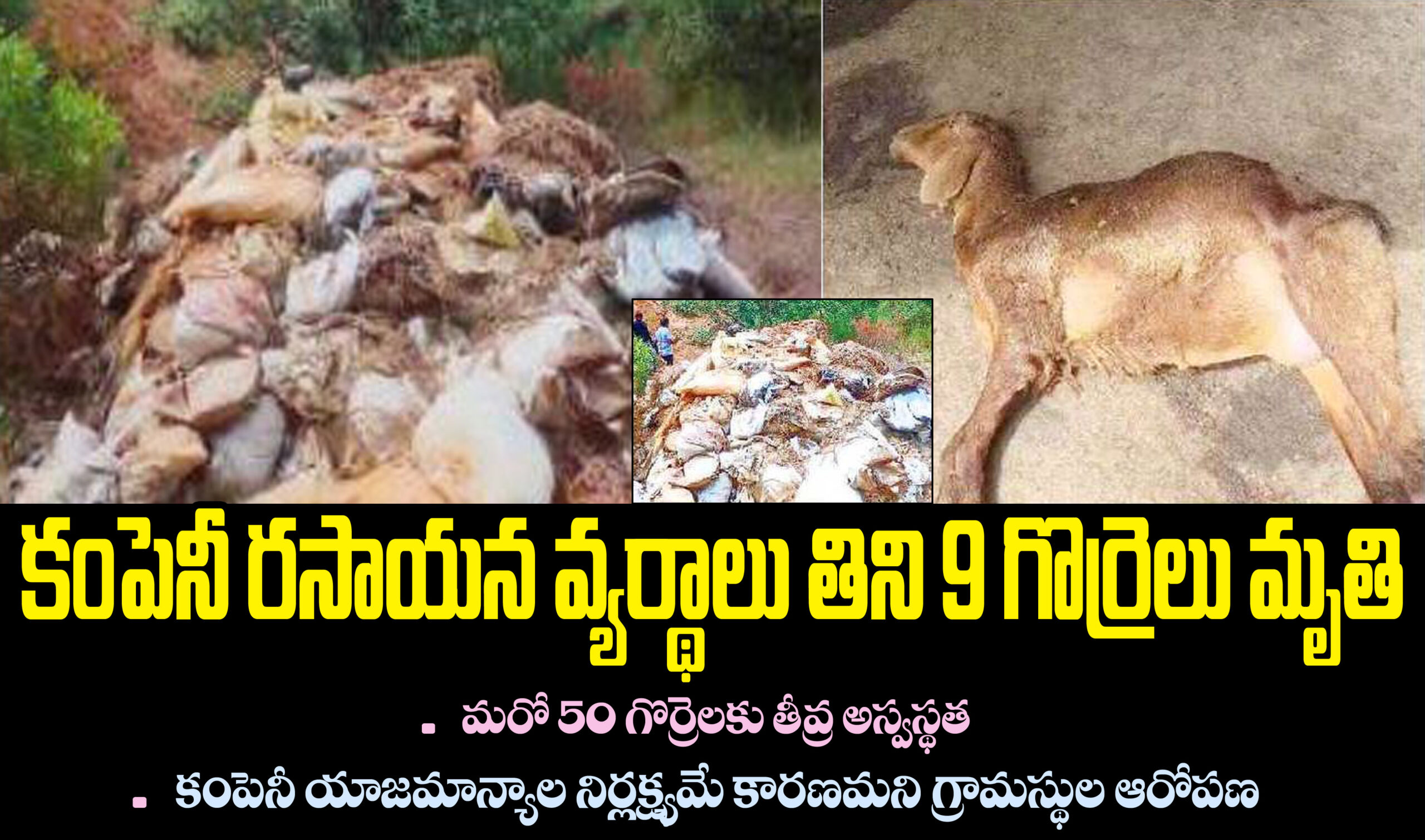 కంపెనీ రసాయన వ్యర్ధాలు తిని 9 గొర్రెలు మృతి October 6, 2025 నిఘానేత్రం కంపెనీ రసాయన వ్యర్ధాలు తిని 9 గొర్రెలు మృతి
