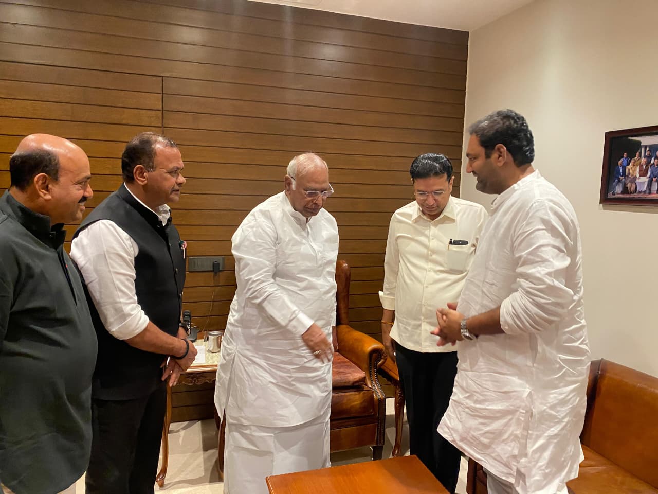 ఇటీవల అనారోగ్యానికి గురై పేస్మేకర్ ఇంప్లాంటేషన్ చికిత్స చేయించుకుని,ప్రస్తుతం బెంగళూరులో విశ్రాంతి తీసుకుంటున్న అఖిల భారత కాంగ్రెస్ కమిటీ అధ్యక్షుడు మల్లికార్జున ఖర్గేని మంత్రులు కోమటిరెడ్డి వెంకట్ రెడ్డి, దుద్దిల శ్రీధర్ బాబు మరియు ఎమ్మెల్యే అనిరుధ్ రెడ్డి పరామర్శించారు. ఈ సందర్భంగా మంత్రి కోమటిరెడ్డి వెంకట్ రెడ్డి మాట్లాడుతూ ఖర్గే త్వరగా పూర్తిగా కోలుకుని, తిరిగి ప్రజా జీవితంలో క్రియాశీలకంగా పాల్గొనాలని మనస్ఫూర్తిగా ఆకాంక్షిస్తున్నాను అని తెలిపారు.