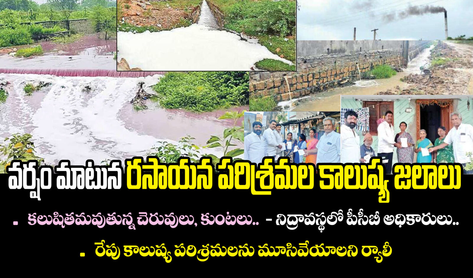 భారీ వర్షాలు పడుతున్న సమయాన్ని తెలంగాణలోని రసాయన పరిశ్రమల యాజమాన్యాలు తమ స్వార్ధనికి అవకాశంగా తీసుకుంటున్నాయి. వర్షపు నీటితో కలిసి రసాయన పరిశ్రమలు కాలుష్య జలాలను బయటకు వదలడం ఆనవాయితీగా మారింది. సంగారెడ్డి జిల్లా జిన్నారం మండలంలోని ఖాజీపల్లి, గడ్డ పోతారం, పటాన్ చెరు, జీడిమెట్ల, మేడ్చల్, ఉమ్మడి మహబూబ్ నగర్ జిల్లాలోని పోలేపల్లి, షాద్ నగర్, ఉమ్మడి నల్లగొండ జిల్లాలోని చౌటుప్పల్, అంతమ్మ గూడెం ఇలా చెప్పుకుంటూ పోతే అనేక పారిశ్రామికవాడల్లో అనేక వివిధ రకాల రసాయన పరిశ్రమలు ఉన్నాయి. వర్షాలు పడుతున్న సమయంలో రసాయన పరిశ్రమల యాజమాన్యాలు వ్యర్థ రసాయన జలాలను బయటకు వదులుతున్నాయి. ఈ విషయం తెలంగాణ పీసీబీ అధికారులకు తెలిసినా వాటి వైపు కన్నెత్తి కూడా చూడటం లేదనే విమర్శలు ఉన్నాయి. కాలుష్య జలాలు బయటకు వస్తుండటంతో సమీపంలోని చెరువులు, కుంటలు కలుషితమవుతున్నాయి. ప్రస్తుతం మొంథా తుపాన్ తో విస్తారంగా వర్షాలు కురుస్తుండటాన్ని రసాయన పరిశ్రమల యాజమాన్యాలు అదునుగా చేసుకుంటున్నాయి. రెండు రోజుల నుంచి వర్షాలు కురుస్తుండటంతో రసాయన పరిశ్రమల నుంచి అవుట్ లెట్ల ద్వారా కాలుష్య జలాలు బయటకు వస్తున్నాయి. ట్రీట్ మెంట్ ప్లాంట్లకు పంపాల్సిన వ్యర్థ జలాలను నిబంధనలకు విరుద్ధంగా బయటకు వదిలేస్తున్నారు. నిఘా పెట్టాల్సిన పీసీబీ అధికారులు ఇటు వైపు చూడటం లేదు.
