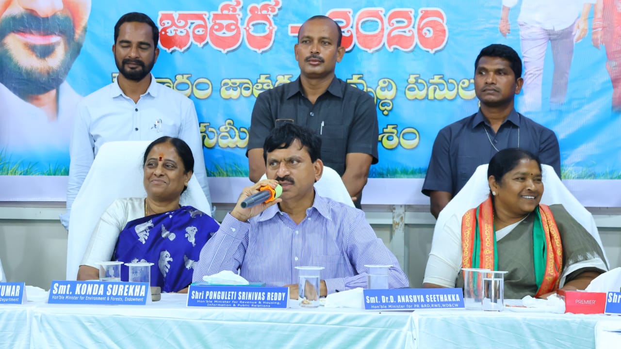 రాష్ట్ర అటవీ, పర్యావరణ, దేవాదాయ శాఖ మంత్రి కొండ సురేఖ మాట్లాడుతూ ముఖ్యమంత్రి రేవంత్ రెడ్డి ఆదేశాల మేరకు అభివృద్ధి కార్యక్రమాలు నిరంతరం కొనసాగుతున్నాయని, గతంలో జరగని అభివృద్ధి కార్యక్రమాలను నేటి ప్రజా ప్రభుత్వం చేస్తున్నదని వివరించారు. చరిత్రలో నిలిచిపోయే విధంగా అభివృద్ధి పనులు కొనసాగుతున్నాయని, రాష్ట్ర పండుగగా గుర్తించిన మేడారం సమ్మక్క సారలమ్మ జాతరను జాతీయ పండుగ గుర్తించాలని
