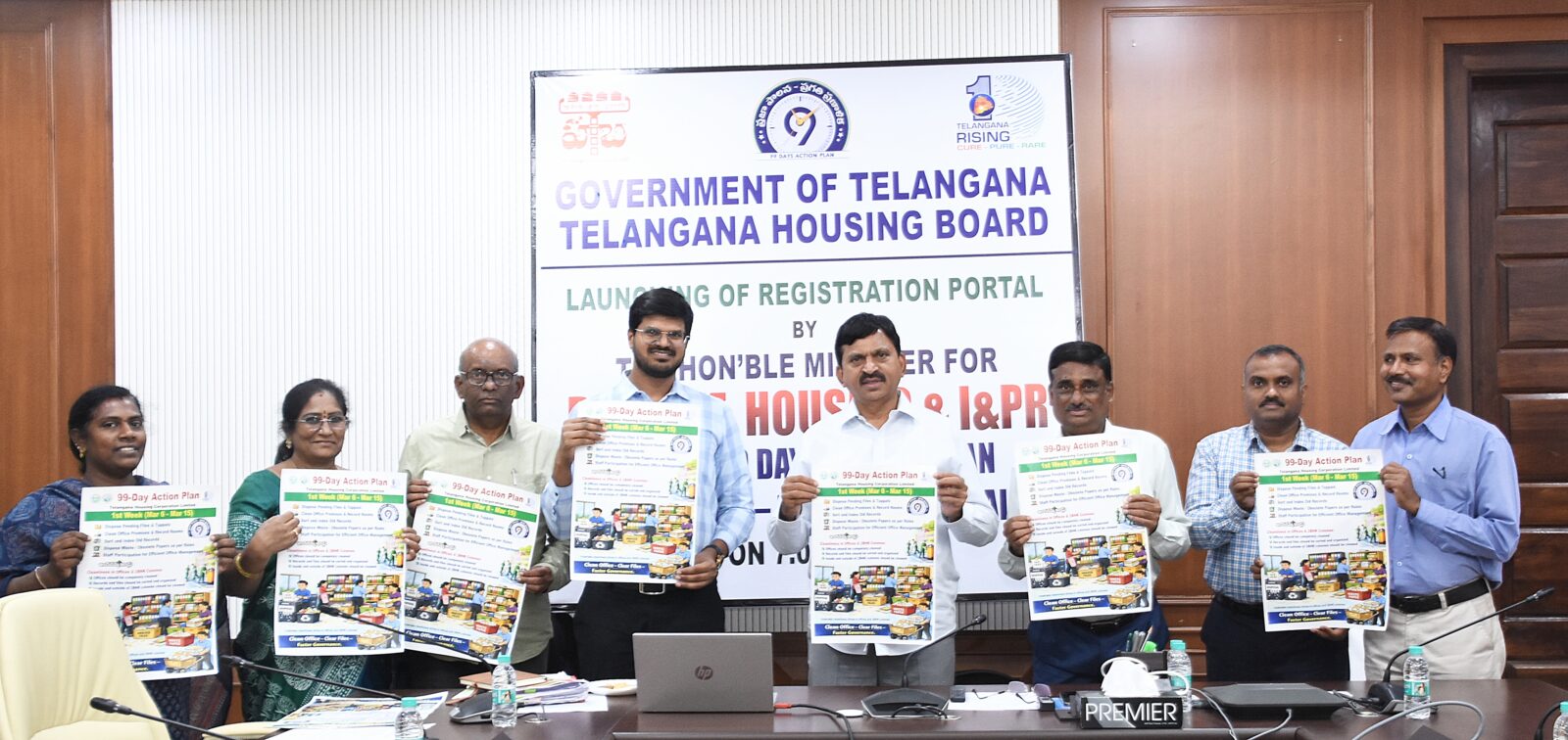 రాష్ట్రంలో ప్రజలకు పారదర్శకంగా వేగవంతమైన సేవలు అందించడానికి తెలంగాణ హౌసింగ్ బోర్డు రూపొందించిన రిజిస్ట్రేషన్ పోర్టల్ను మంత్రి శనివారంనాడు సచివాలయంలో ప్రారంభించారు. అలాగే తెలంగాణ హౌసింగ్ కార్పొరేషన్ 99 రోజుల కార్యాచరణ ప్రణాళికకు సంబంధించిన పోస్టర్ను కూడా ఆవిష్కరించారు. ఈ సందర్భంగా మంత్రి మాట్లాడుతూ ముఖ్యమంత్రి రేవంత్ రెడ్డి ఆలోచనకు అనుగుణంగా చేపట్టిన ప్రజాపాలన ప్రగతి నివేదిక కార్యక్రమాన్ని విజయవంతం చేయాలని అధికారులను ఆదేశించారు. ఈ 99 రోజుల్లో హౌసింగ్ కార్పొరేషన్, హౌసింగ్ బోర్డ్ నిర్ధేశించుకున్న లక్ష్యాలను చేరుకునే విధంగా అంకిత భావంతో పనిచేయాలని సూచించారు. హౌసింగ్ బోర్డ్ పరిధిలో ఇండ్లు, ఫ్లాట్లు, స్ధలాలను వాయిదాల రూపంలో కొనుగోలు చేశారని ఇందులో కొంతమంది అసలు మరికొంతమంది వడ్డీలు చెల్లించాలని, ఇంకొంతమంది వాయిదాల గడువు ముగిసిపోయిందని ఈ విధంగా దాదాపు ఐదు వేల మంది తమ ఆస్తులను రిజిస్ట్రేషన్ చేసుకోవాల్సిఉందని ఈసందర్భంగా అధికారులు మంత్రిగారికి వివరించారు.దీనిపై మంత్రిగారు స్పందిస్తూ ప్రభుత్వ నిబంధనలకు అనుగుణంగా అసలు, వడ్డీ, ప్రస్తుత మార్కెట్ ధరలు వంటి అంశాలను పరిగణనలోకి తీసుకొని రిజిస్ట్రేషన్ చేయాలని సూచించారు. ఈ పోర్టల్ వల్ల ప్రజలు ఎవరూ అధికారుల చుట్టూ తిరగవలసిన అవసరం ఉండదని, పూర్తి సమాచారం పోర్టల్ లోనే ఉంటుందన్నారు. కేటాయింపుదారులు తమ రిజిస్ట్రేషన్లు, చెల్లింపుల ధృవీకరణ మరియు ఇతర లావాదేవీల పర్యవేక్షణను ఒకే వేదిక ద్వారా సులభంగా పూర్తి చేసుకోవచ్చు.డిజిటల్ విధానం వల్ల పారదర్శకత పెరగడమే కాకుండా, పౌరులకు సేవలు మరింత చేరువవుతాయి. ఇది హౌసింగ్ బోర్డు మరియు అలాటీల మధ్య నమ్మకాన్ని మరింత బలోపేతం చేస్తుందన్నారు. సాంకేతికతను అందిపుచ్చుకుని ప్రభుత్వ నిబంధనలకు అనుగుణంగా ప్రజలకు సౌకర్యవంతమైన పాలన అందించడమే ప్రభుత్వ నిబద్ధత అని పేర్కొన్నారు. ఈకార్యక్రమంలో హౌసింగ్ బోర్డు ఎండీ వీపీ గౌతమ్, సీఈ రమణారెడ్డి తదితరులు పాల్గొన్నారు.