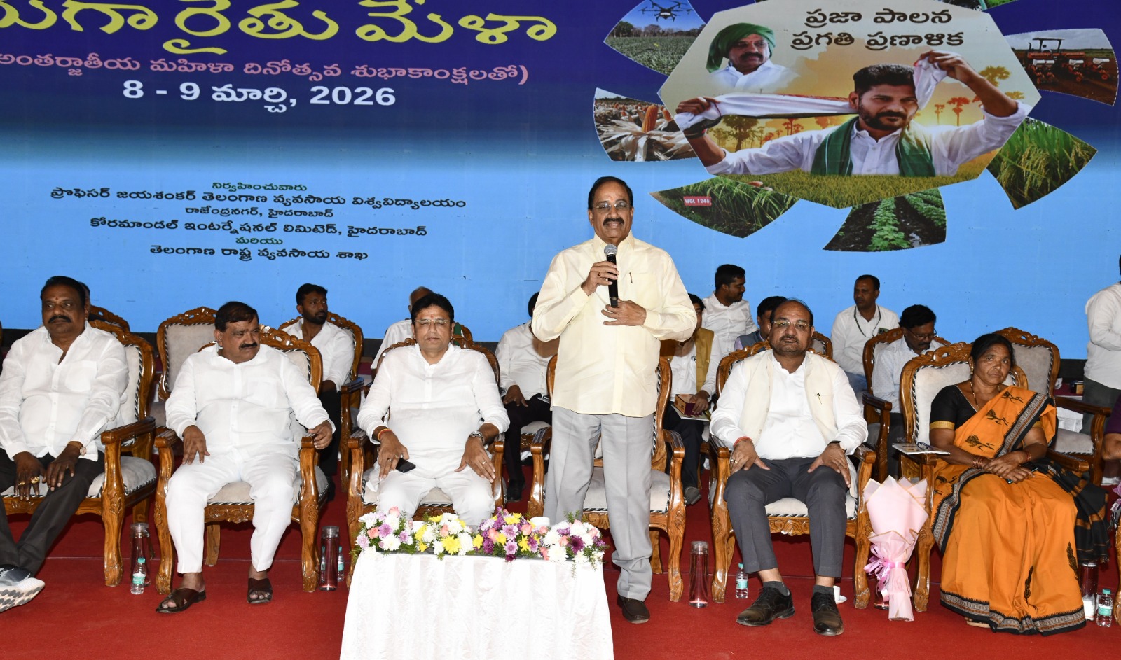 రాజేంద్రనగర్ లోని ప్రొఫెసర్ జయశంకర్ తెలంగాణా వ్యవసాయ విశ్వవిద్యాలయం క్రీడా ప్రాంగణం లో రెండు రోజుల పాటు జరగనున్న మెగా రైతు మేళా ఈ రోజు ప్రారంభమైంది.పీ జే టీ ఏ యూ, కోరమాండల్ ఇంటర్నేషనల్ లిమిటెడ్,రాష్ట్ర వ్యవసాయ శాఖలు సంయుక్తం ఈ మేళా ని నిర్వహిస్తున్నాయి.అంతర్జాతీయ మహిళా దినోత్సవం ని పురస్కరించుకొని, 2026 ని అంతర్జాతీయ మహిళా రైతు సంవత్సరం గా ఐక్యరాజ్యసమితి ప్రకటించిన నేపథ్యం లో ఈ మేళాని ఏర్పాటు చేసారు.రాష్ట్రం నలుమూలనుంచి పెద్ద సంఖ్యలో రైతులు,మహిళా రైతులు,వ్యవసాయ రంగ నిపుణులు,వ్యవసాయ విద్యార్థులు ఈ మేళాకి హాజరు అయ్యారు.ముఖ్యమంత్రి ఎనుమల రేవంత్ రెడ్డి నేత్రత్వం లోని తమ ప్రభుత్వం వ్యవసాయం,రైతాంగ సంక్షేమమే ఊపిరిగా నిరంతరం పని చేస్తోందని వ్యవసాయ శాఖ మంత్రి తుమ్మల నాగేశ్వర రావు అన్నారు.ప్రపంచంలోనే తెలంగాణా రైతుని తలెత్తుకుని నిలబడేలా చేసేందుకు అన్ని చర్యలు తీసుకుంటున్నామన్నారు.దేశం లో ఆనాటి ప్రధానమంత్రి మన్మోహన్ సింగ్ తర్వాత తమ నేత రాహూల్ గాంధీ అలోచనకి అనుగుణం గా సుమారు 25 లక్షల మందికి సుమారు 21 వేల కోట్ల రూపాయల రుణ మాఫీ చేసామన్నారు.గత ప్రభుత్వం లో ఆగిపోయిన రాయితీ విత్తనాలు,వ్యవసాయ యాంత్రీకరణ వంటి పథకాల్ని పునరుద్ధరించి ప్రారంభిస్తున్నామని తుమ్మల వివరించారు.500 కోట్ల రూపాయల తో పునరుద్దరించిన వ్యవసాయ యాంత్రీకరణ పథకం లో మహిళా రైతుల కే పెద్ద పీటవేస్తున్నామన్నారు. భవిష్యత్తులో మహిళలకే డ్రోన్ లు అందిస్తామని తెలిపారు.పంటమార్పిడి,సహజ వ్యవసాయ విధానాలని విరివిగా ప్రోత్సహిస్తున్నామన్నారు.ప్రతి జిల్లాలో ఆయిల్ పాం పరిశ్రమని ఏర్పాటు చేయడానికి కృషి చేస్తున్నామని పేర్కోన్నారు.తమ ప్రభుత్వం రాగానే మూడు కొత్త వ్యవసాయ కళాశాలలు ఏర్పాటు చేసామని తెలిపారు.రైతు వేదికల ద్వారా రైతులకి అధునాతన టెక్నాలజీలపై అవగాహన కలిపిస్తున్నామని వివరించారు.రైతు లు తమ ఉత్పత్తులకి విలువ జోడింపు కి తోడ్పడే టెక్నలాజీలని,యాంత్రీకరణల్ని ప్రోత్సహిస్తున్నామని తుమ్మల నాగేశ్వరరావు వివరించారు.అధునాతన నైపుణ్యాలు,టెక్నాలజీలని ఉపయోగించుకొని ప్రజల అవసరాలకి సరిపడా అహారధాన్యాలని రైతులు పండించాలని రాష్ట్ర ఐ.టీ,పరిశ్రమల శాఖా మంత్రి దుద్దిళ్ళ శ్రీధర్ బాబు పిలుపునిచ్చారు.అలాగే భూసార పరిరక్షణ,పంటల వైవిధ్యీకరణ ల పై రైతులు ప్రత్యేక దృష్టి పెట్టా లని సూచించారు.ప్రపంచం లో ఎక్కడ యుద్ధం జరిగినా మన పైన కూడా ప్రభావం పడుతున్న విషయాన్ని గమనించి ఆహారధాన్యాల విషయం లో స్వావలంబన సాధించాలన్నారు.కొత్త వంగడాలు,టెక్నాలజీలని అందుబాటులోకి తీసుకొని వచ్చి వ్యవసాయ విశ్వవిద్యాలయం రైతులకి అసమాన సేవ చేస్తున్నదని శ్రీధర్ బాబు ప్రశంసించారు.మెగా రైతు మేళా న