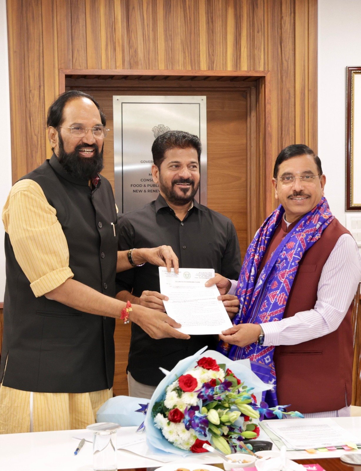 - కేంద్ర మంత్రి ప్రహ్లాద్ జోషికి ముఖ్యమంత్రి రేవంత్ రెడ్డి, రాష్ట్ర మంత్రి ఉత్తమ్ కుమార్ రెడ్డి వినతి
