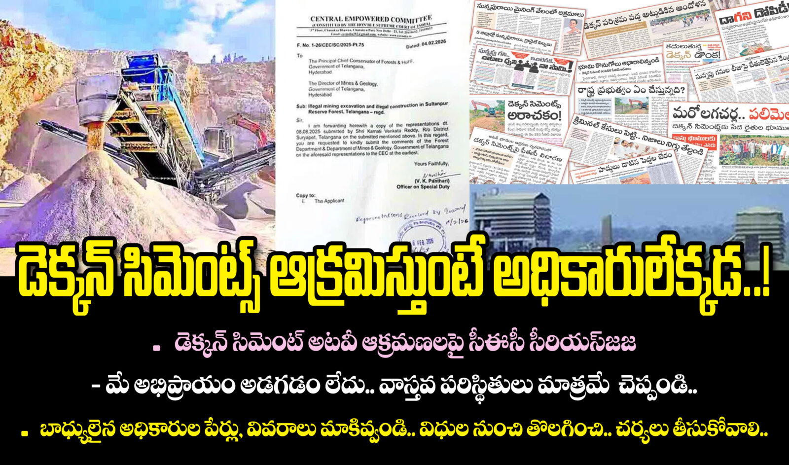 - డెక్కన్ సిమెంట్స్ అటవీ ఆక్రమణలపై సీఈసీ సీరియస్
