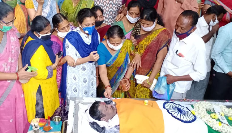 ఆర్మీ అధికారులు, మంత్రి జగదీశ్రెడ్డి, కలెక్టర్ వినయ్ కృష్ణారెడ్డి, ఎస్పీ భాస్కరన్ తదితర జిల్లా అధికారులు సంతోష్బాబు పార్థివదేహం ముందు పుష్పగుచ్ఛాలు ఉంచి శ్రద్ధాంజలి ఘటించారు. అంతకు ముందు వీర జవాన్ తల్లిదండ్రులు, భార్య సంప్రాదాయ ప్రకారం సంతోష్బాబు నోటిలో తులసి నీళ్లు పోశారు. అంతిమయాత్రలో కరోనా నిబంధనలు పాటించాలని అధికారులు కోరారు. కేసారం వ్యవసాయ క్షేత్రంలో నిర్వహిస్తున్న అంతక్రియలకు కుటుంబ సభ్యులు, ఆర్మీ అధికారులకు మొత్తం 50 మందికి మాత్రమే ఆర్మీ అధికారులు అనుమతి ఇచ్చారు. చివరిసారిగా కల్నల్ మృతదేహాన్ని చేసేందుకు సూర్యాపేట వాసులు తరలివచ్చి నివాళులు అర్పించారు.
