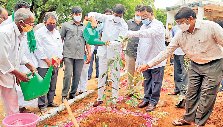 పర్యావరణాన్ని పరిరక్షించుకోవాల్సిన బాధ్యత ప్రతి ఒక్కరిపై ఉందని రాష్ట్రగృహనిర్మాణ శాఖ మంత్రి వేముల ప్రశాంత్రెడ్డి అన్నారు. సోమవారం గచ్చిబౌలిలోని హౌసింగ్ కార్పొరేషన్ నిర్మిత కేంద్రంలో హరితహారంలో భాగంగా మంత్రి వేముల మొక్కలు నాటారు. ఈ సందర్భంగా మంత్రి ప్రశాంత్రెడ్డి మాట్లాడుతూ.. పచ్చదనం పెరుగాలి.. ప్రకృతిని పరిరక్షించుకోవాలనే ముఖ్యమంత్రి కేసీఆర్ ఆలోచనలకు అనుగుణంగా గృహనిర్మాణశాఖ, హౌసింగ్ కార్పొరేషన్ తరపున 2.8 ఎకరాల్లో మొక్కలు నాటినట్లు చెప్పారు. ఈ కేంద్రంలో నాటిన మొక్కలన్నీ సంరక్షించాల్సిన బాధ్యత గృహనిర్మాణశాఖ ఉద్యోగులు, సిబ్బందిపై ఉందన్నారు. ప్రభుత్వ కార్యాలయాలు, ఇనిస్టిట్యూట్లలో, ట్రైనింగ్ సెంటర్లలో ఖాళీ స్థలాలు ఉన్న చోట పెద్ద ఎత్తున మొక్కలు నాటాలని మంత్రి పిలుపునిచ్చారు. కార్యక్రమంలో గృహనిర్మాణశాఖ ముఖ్యకార్యదర్శి సునీల్శర్మ, సీఈలు రవీందర్రెడ్డి, రవిచంద్ర తదితరులు పాల్గొన్నారు.