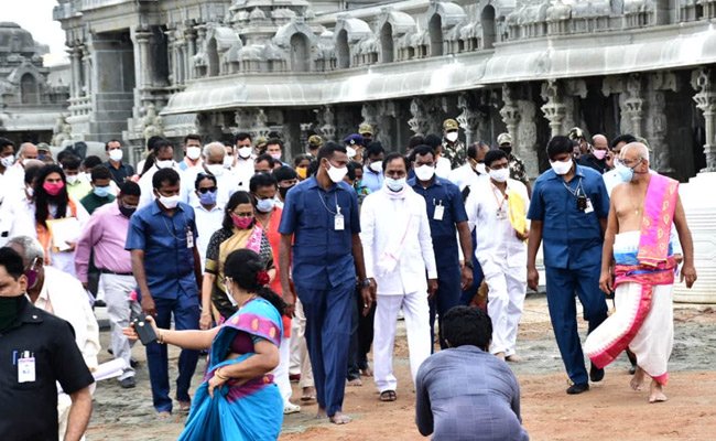 - శ్రీ లక్ష్మీ నరసింహస్వామిని దర్శించుకొని ప్రత్యేక పూజలు చేసిన అనంతరం దాదాపు 6 గంటలపాటు ఆలయ నిర్మాణ పనులను పరిశీలించిన అనంతరం నిర్వహించిన సమీక్షలో ముఖ్యమంత్రి కేసీఆర్
