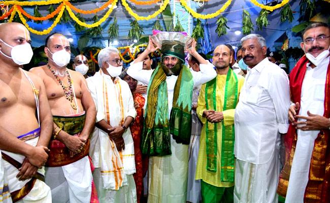 ముఖ్యమంత్రి వైఎస్ జగన్ మోహన్ రెడ్డి శ్రీవారి సాలకట్ల బ్రహ్మోత్సవాల్లో పాల్గొన్నారు. పంచెకట్టు, తిరునామంతో.. మంగళ వాయిద్యాలు, వేద మంత్రోచ్ఛారణల మధ్య ఊరేగింపుగా వెళ్లి శ్రీవారికి ప్రభుత్వం తరపున పట్టు వస్త్రాలు సమర్పించారు. ఈ సందర్భంగా వేదపండితులు ముఖ్యమంత్రికి ఆశీర్వచనాలు అందించారు. అనంతరం శ్రీవారి గరుడ వాహన సేవలో సీఎం జగన్ పాల్గొన్నారు. తిరుమల తిరుపతి దేవస్థానం క్యాలెండర్ను, డైరీని ఆయన ఆవిష్కరించారు. కాసేపటి క్రితమే ఆయన బేడి ఆంజనేయస్వామిని దర్శించుకున్నారు. స్వామివారికి ప్రత్యేక పూజలు నిర్వహించారు.