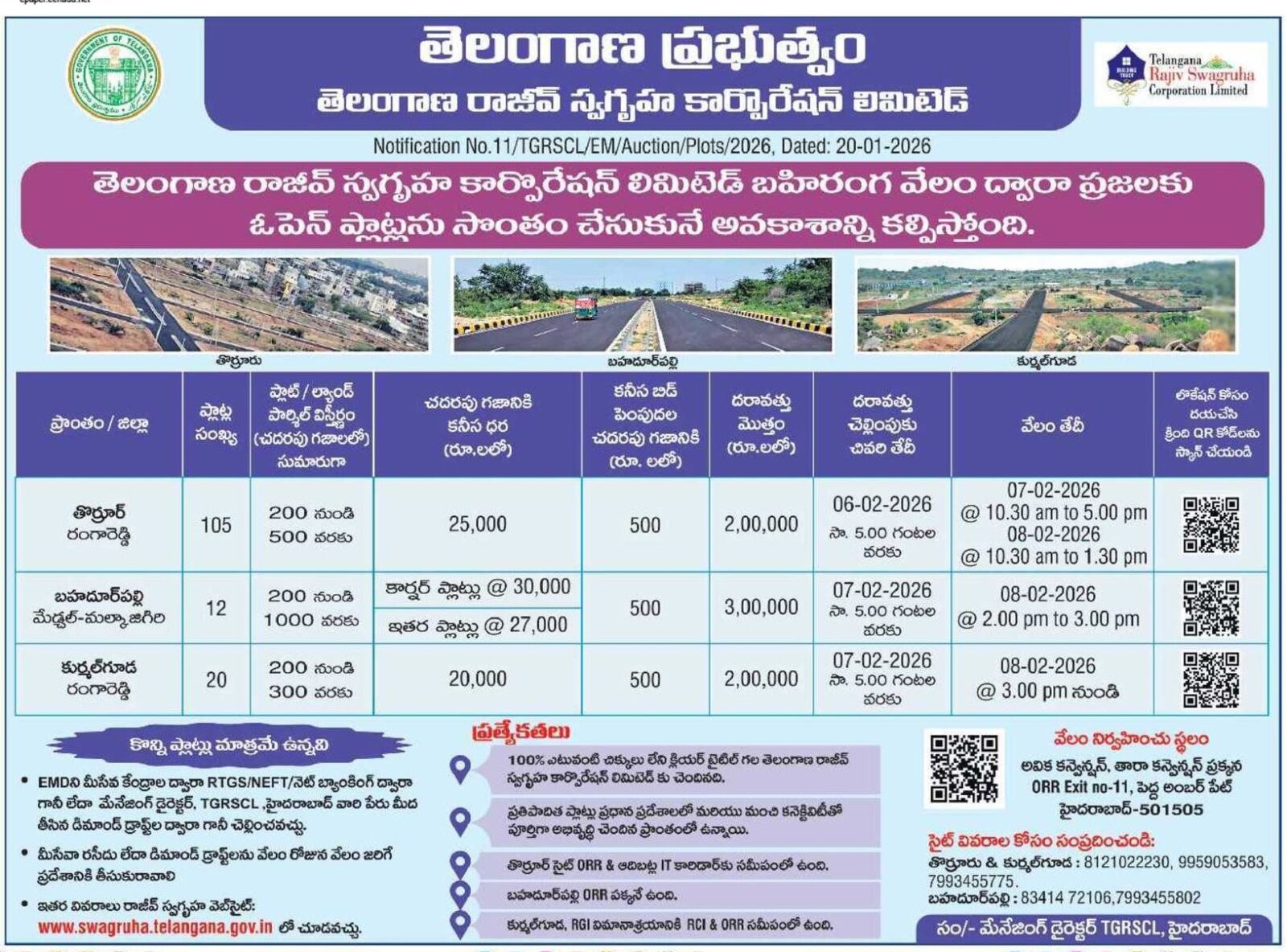 హైదరాబాద్ : నగరంలోని వివిధ ప్రాంతాల్లో అందుబాటులో ఉన్న 137 ఓపెన్ ప్లాట్లను (plots) బహిరంగ వేలం ద్వారా విక్రయించాలని తెలంగాణ రాజీవ్ స్వగృహ కార్పొరేషన్ నిర్ణయించింది.…